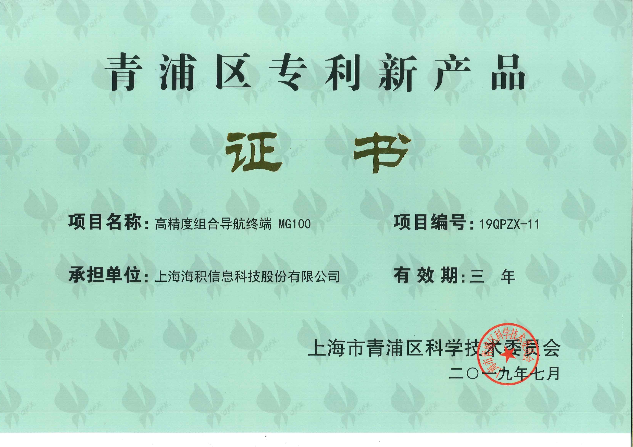 青(qing)浦區(qu)專(zhuan)利新品(pin)證書-測(ce)地(di)型GNSS接收機(形變監(jian)測(ce)接收機)HG-BX-RAG360