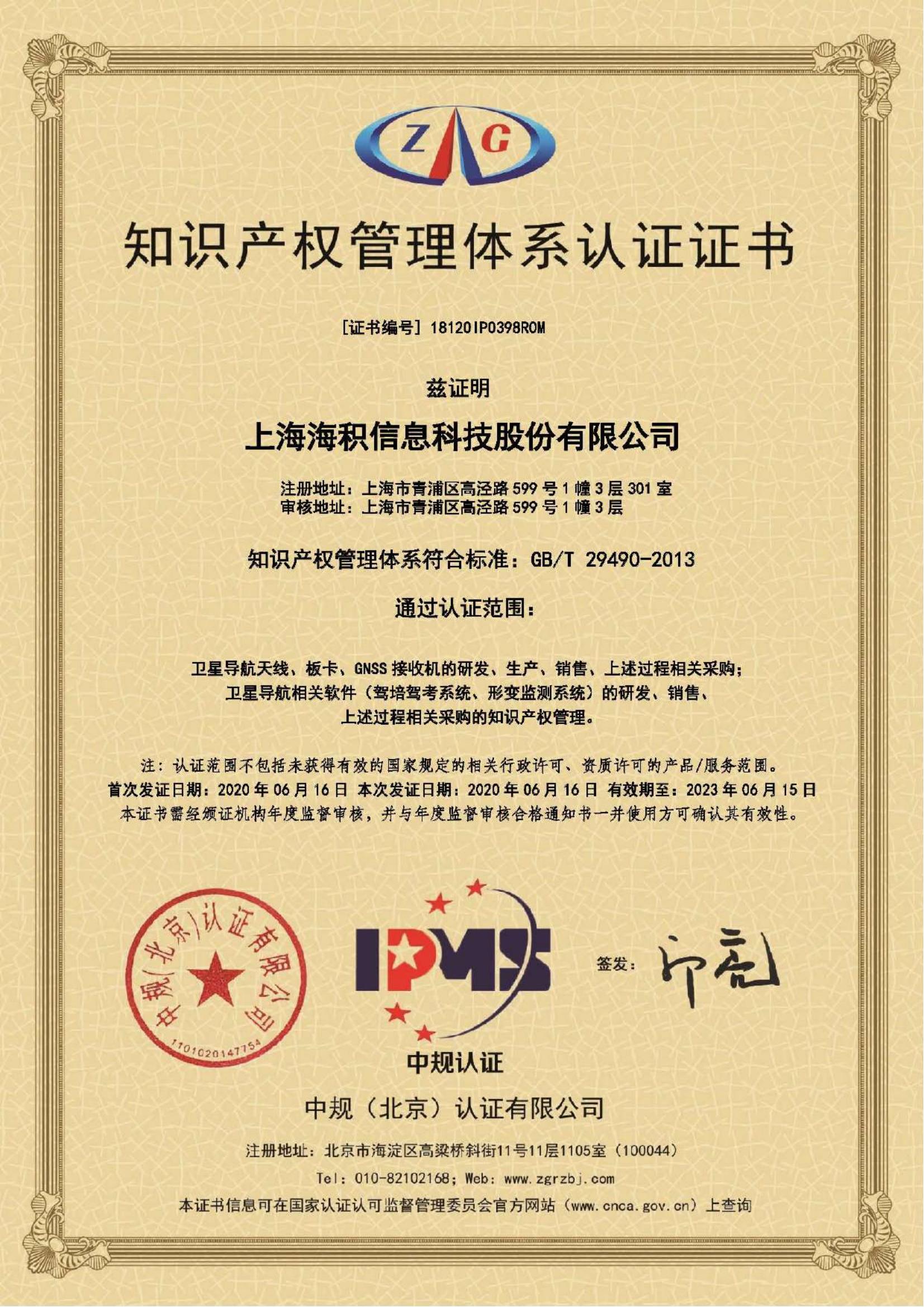 GBT 29490-2013 知識產(chan)權管理體系認(ren)證證書(shu)