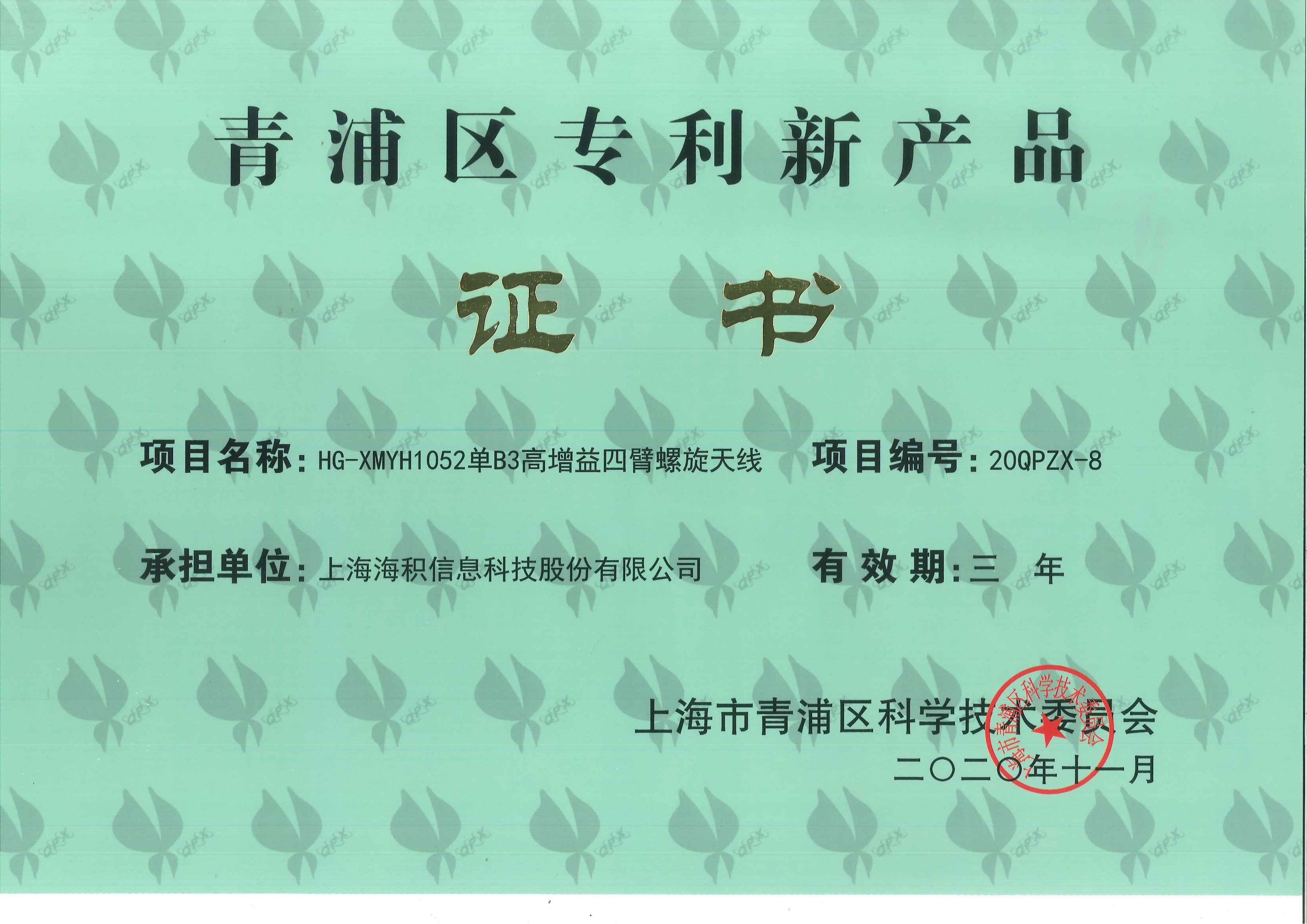 2020年(nian)上(shang)海市高新技術(shu)成果轉化(hua)項目百(bai)佳(衛星定位多頻天(tian)線)