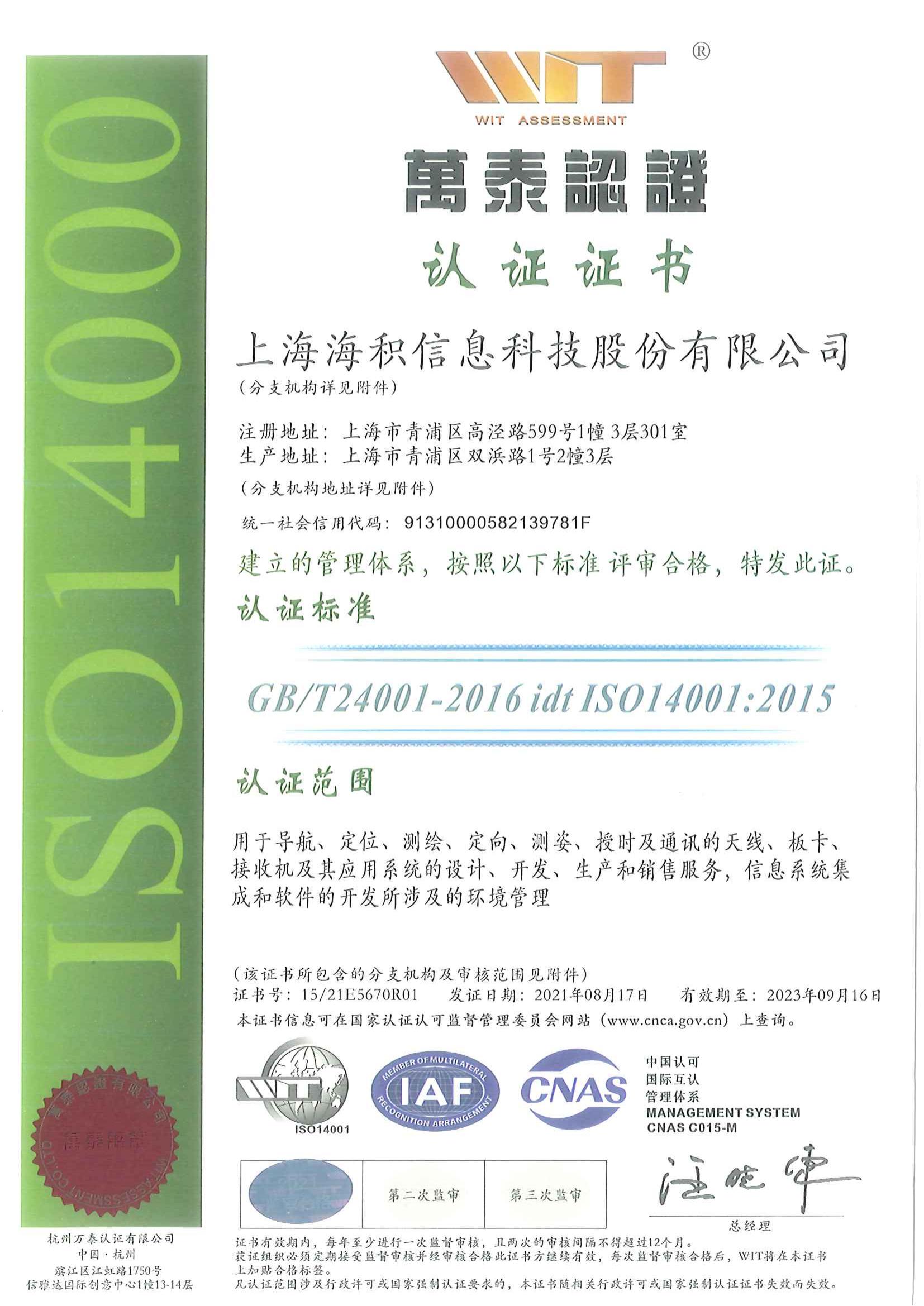 GBT24001-2016idtISO14001:2015 環境管理體系證書