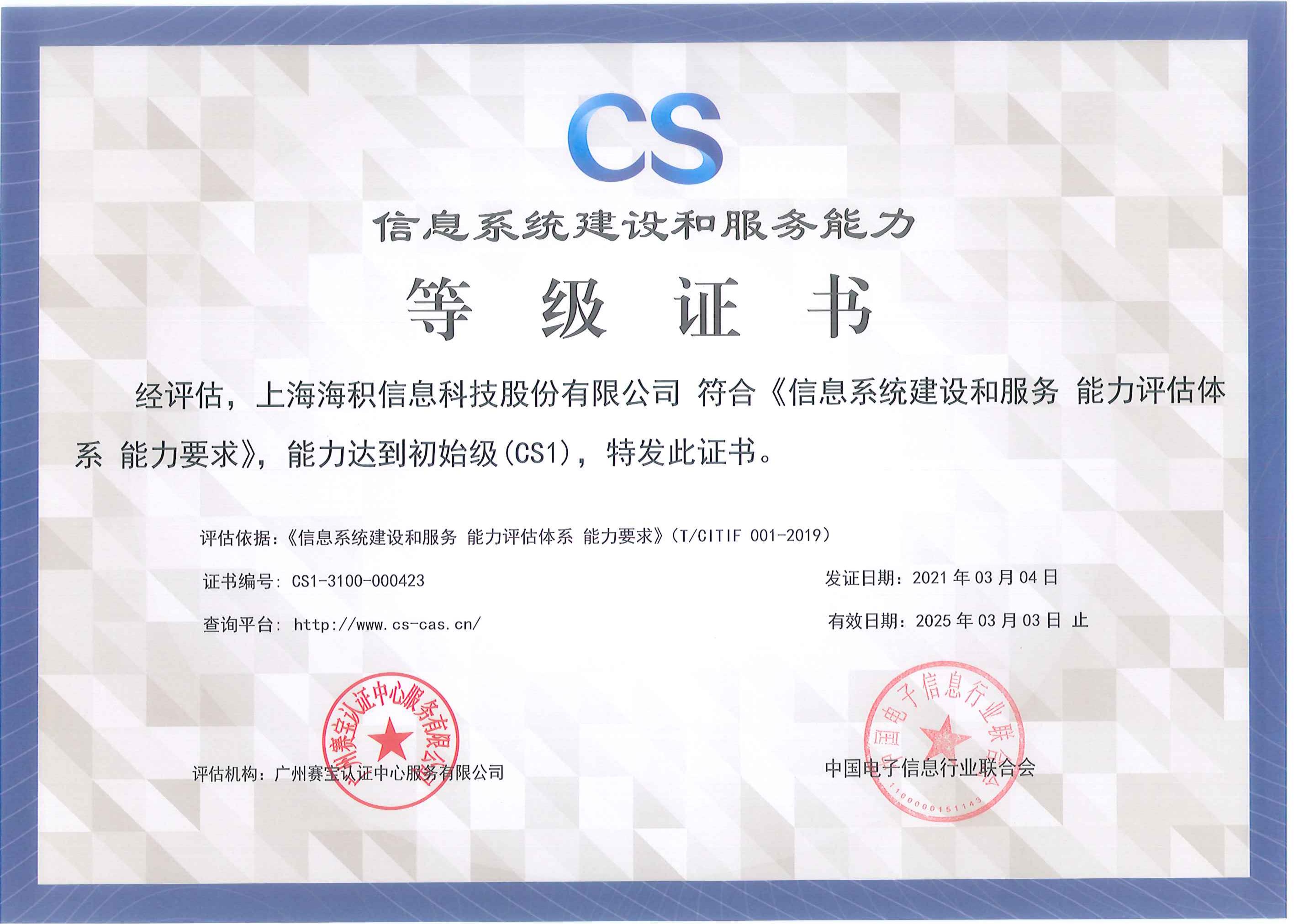 信(xin)息(xi)系(xi)統建設和服務能力等(deng)級證書