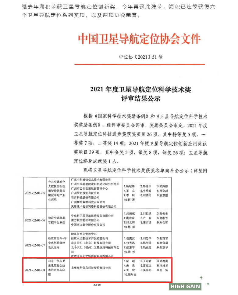 【H·時訊】喜報!—海積榮獲2021年度衛星導航定位創新應用獎!