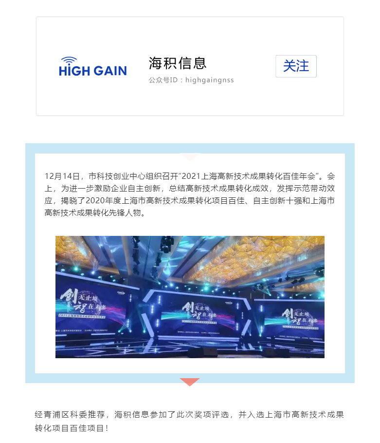 【海積·動態】捷報頻傳!海積再獲上海市高新技術成果轉化“百佳”稱號~