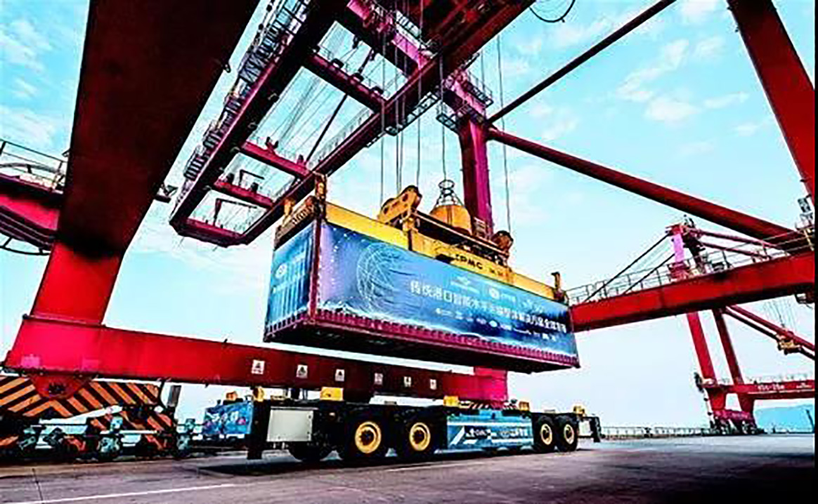 9月26日,長(chang)江武漢花(hua)山(shan)港,一排排橋(qiao)吊、船吊、軌(gui)道吊依次(ci)排開,3輛約(yue)15米長(chang)、最(zui)高(gao)載(zai)重(zhong)75噸(dun)的(de)(de)“平(ping)板車(che)”自主行(xing)駛,將(jiang)輪船上卸(xie)(xie)下的(de)(de)集裝(zhuang)箱運至貨物堆場。令人(ren)稱奇的(de)(de)是(shi),碼頭上不(bu)見一名裝(zhuang)卸(xie)(xie)工,“平(ping)板車(che)”居然也(ye)沒有駕駛室,停車(che)、裝(zhuang)箱、駛離、停車(che)、卸(xie)(xie)箱等一系(xi)列(lie)操作(zuo)完(wan)全自主完(wan)成。原來,這是(shi)新投入(ru)營運的(de)(de)利(li)用北斗進行(xing)定位的(de)(de)5G智能(neng)無人(ren)集裝(zhuang)箱轉運卡車(che)。這種車(che)及(ji)其前后的(de)(de)支(zhi)撐系(xi)統(tong),讓花(hua)山(shan)港一舉邁(mai)入(ru)了智能(neng)港口時代(dai)。