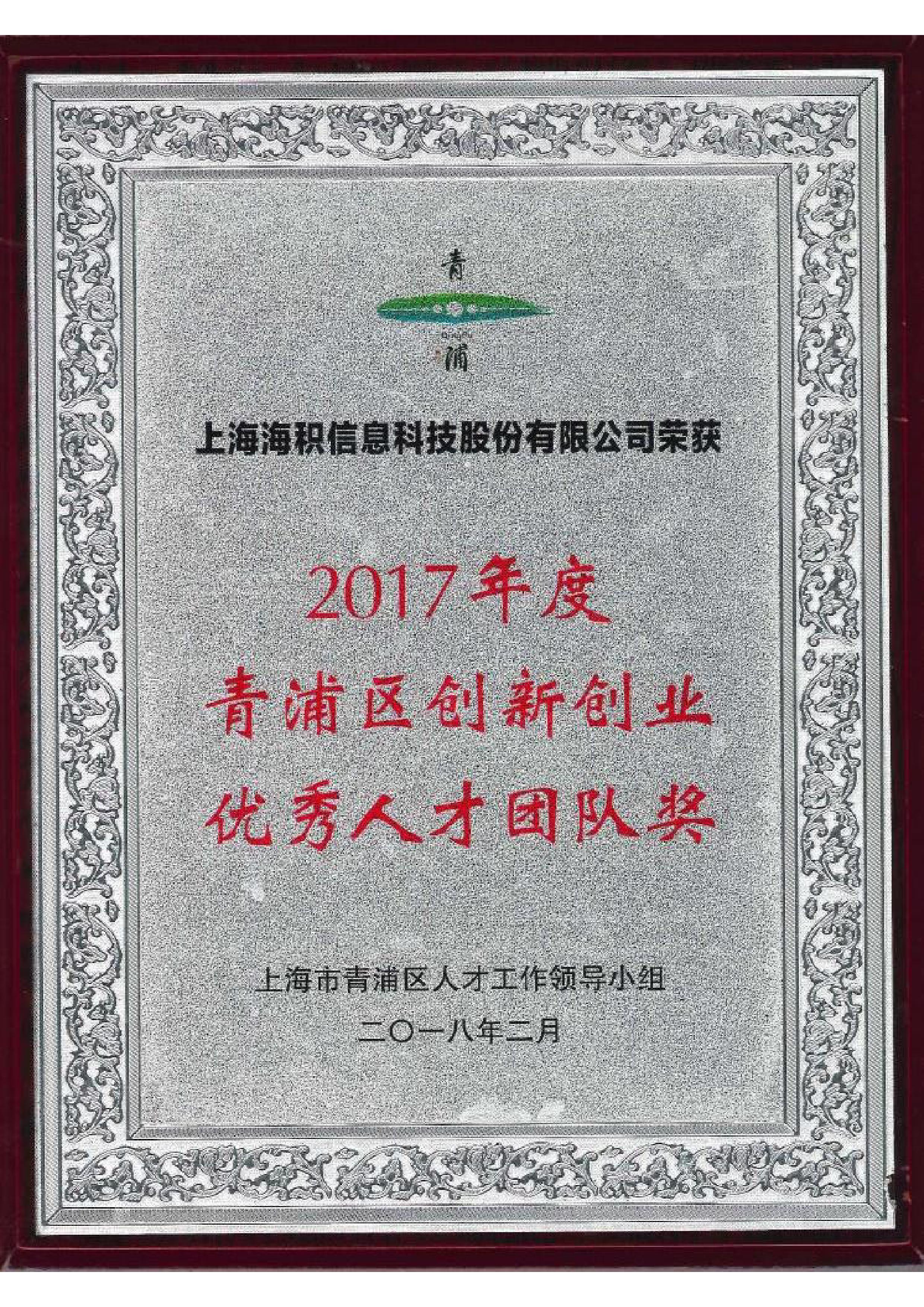 年度青(qing)浦區創新創業(ye)優秀人(ren)才團隊獎