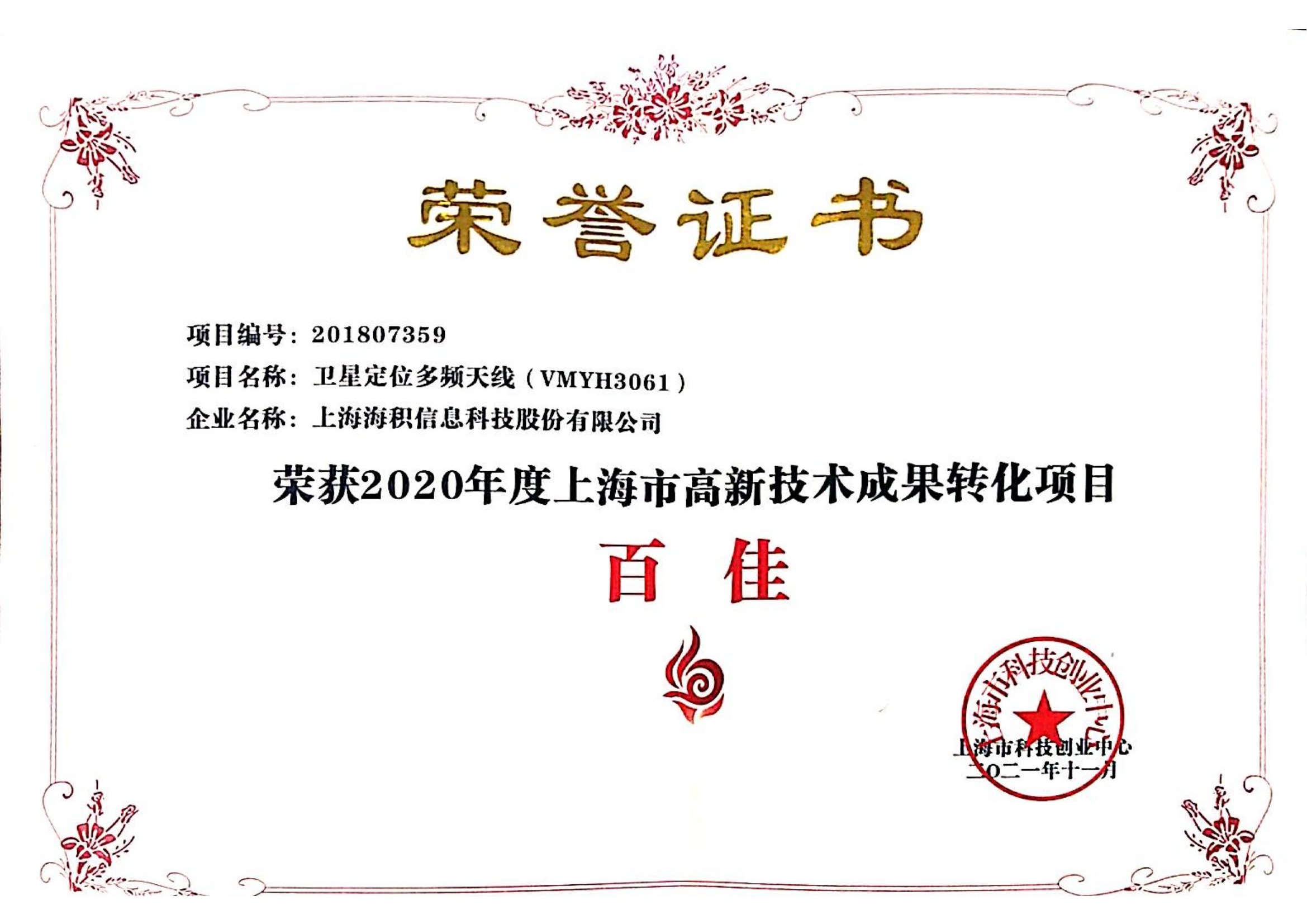 2020年(nian)上(shang)海市高新技術(shu)成果轉化(hua)項目百(bai)佳(衛星定位多頻天(tian)線)