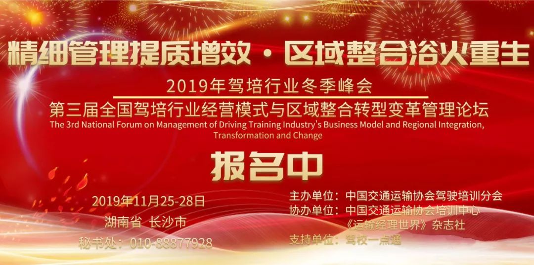 第三屆“全(quan)國駕培(pei)行業經營模式與(yu)區域整合(he)轉型變革管理論壇(tan)(簡稱:2019駕培(pei)行業冬季峰會(hui)(hui))”將于今年的(de)11月25-28日在星城(cheng)-長沙市舉行。 2019駕培(pei)行業冬季峰會(hui)(hui),海(hai)積信息(xi)誠邀駕培(pei)行業同仁相聚長沙。