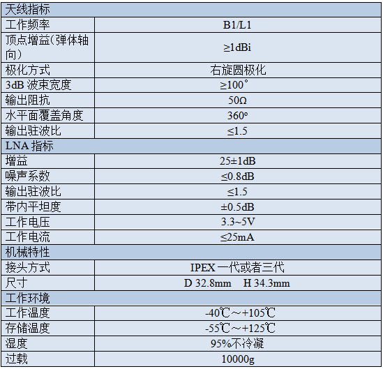 該天線可以實(shi)現GPS/北斗二代B1/L1導航(hang)定位頻(pin)段(duan)的射頻(pin)前(qian)端接(jie)收和放大處理。 抗(kang)過載(zai)設計保證裝配在(zai)引信前(qian)段(duan)