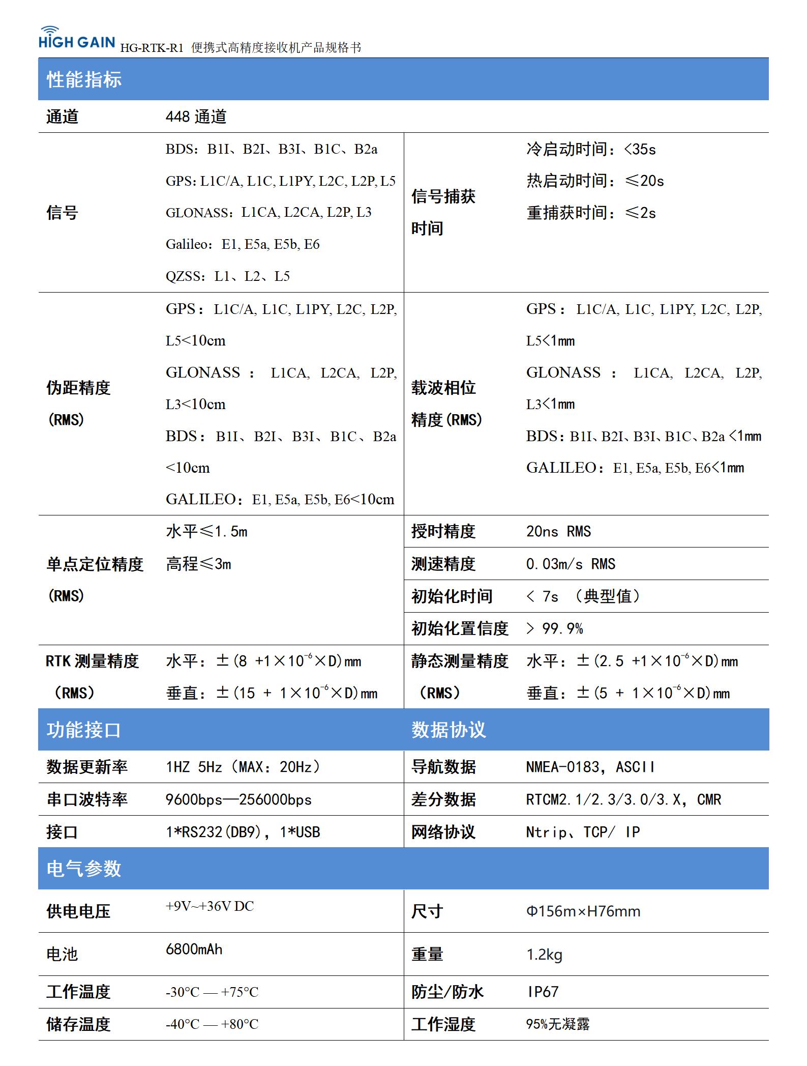 HG-RTK-R1是海(hai)積信息最(zui)新推出(chu)的(de)一款(kuan)便攜式高精度(du)接(jie)收機(ji),該接(jie)收機(ji)采(cai)用(yong)全(quan)系統多(duo)頻點(dian)的(de)GNSS板卡,支持(chi)BDS、GPS、GLONASS、GALILEO、QZSS系統,可接(jie)收GPS L1/L2/L5、GLONASS G1/G2/G3、BDS B1/B2/B3、GAL E1/E2/E5a/E5b,以及QZSS L1/L2/L5信號,具備串口、4G、藍牙等多(duo)種通訊接(jie)口,多(duo)個不(bu)同數(shu)據(ju)流的(de)高速輸出(chu),內置大容(rong)量存儲,能夠廣泛(fan)應用(yong)于精密定位、測(ce)(ce)量測(ce)(ce)繪(hui)等領域,兼備高可靠(kao)性和(he)高精度(du)特點(dian)。